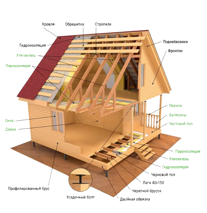 ✅ Двойная обвязка из бруса, несущие стены и перегородки из профилированного бруса камерной сушки с предоставлением сертификата соответствия качества.
