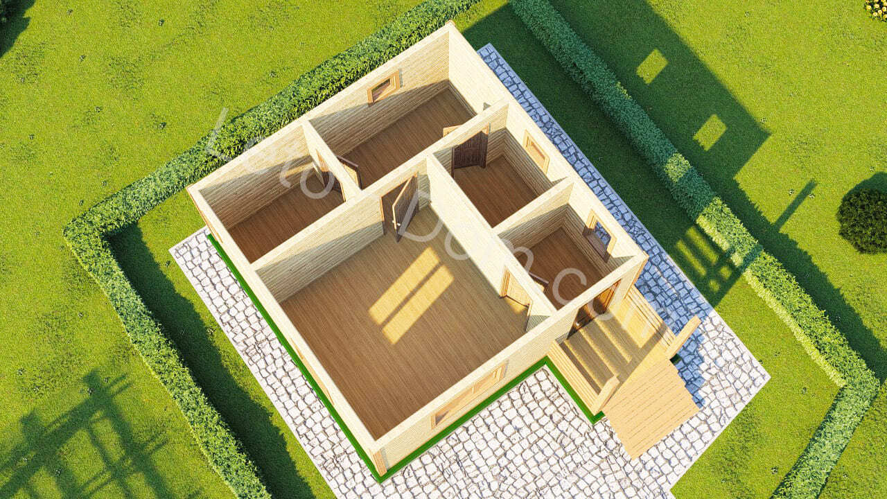 Высота от лаг пола до потолочных балок: 2,25 м (+- 5 см), 17 рядов бруса.