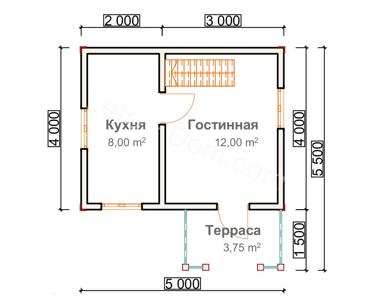 Первый и второй этаж соединяет одномаршевая или двух маршевая лестница (лестницу бригада монтирует на месте).Отделка лестницы выполнена из массива сосны класса "А": тетива, перила – резные, балясины – точеные, устанавливаются стартовые столбы. Ширина ступени лестницы от 250 мм.