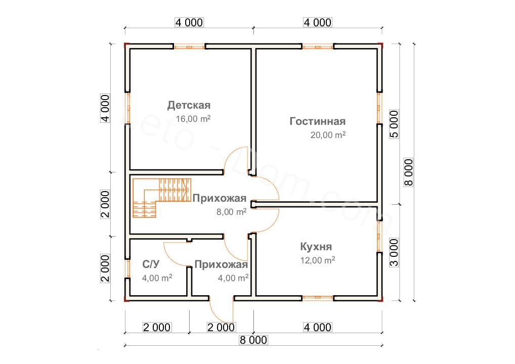 Строганный профилированный брус сечением 90мм×140 мм, 140мм×140 мм или 190мм×140 мм в зависимости от выбранной толщины – камерной сушки. Брус изготовлен из древесины хвойных пород (ель, сосна). Брус с внешней и внутренней стороны прямой. (По желанию заказчика можем изготовить брус с внешней стороны с закруглением). Между венцами прокладывается льноджутовое полотно.