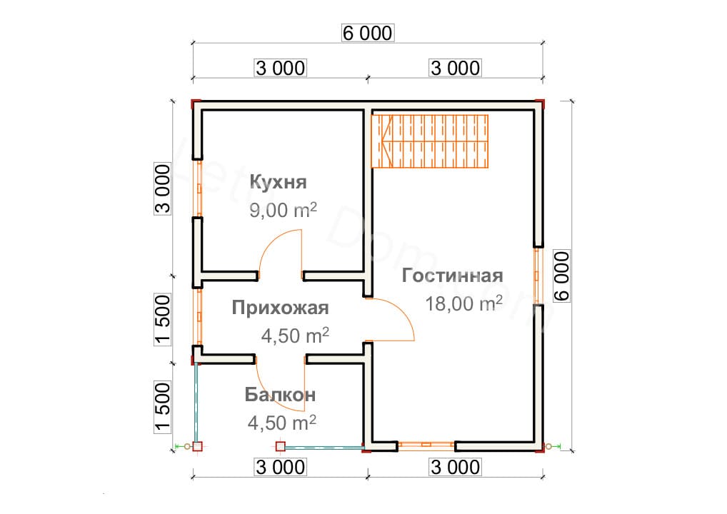 Дом из бруса 6х6м - Д3