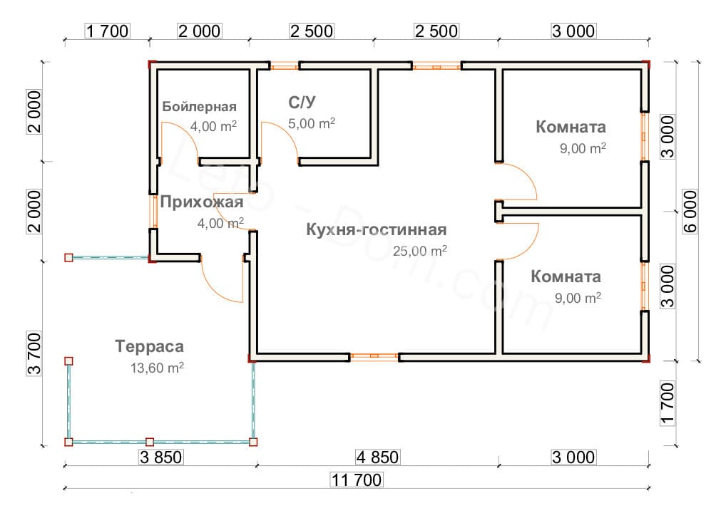 Внесем изменения в любой типовой проект: перенесем перегородки, двери, пристроим террасу.