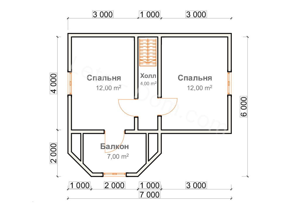 Первый и второй этаж соединяет одномаршевая или двух маршевая лестница (лестницу бригада монтирует на месте).Отделка лестницы выполнена из массива сосны класса "А": тетива, перила – резные, балясины – точеные, устанавливаются стартовые столбы. Ширина ступени лестницы от 250 мм.