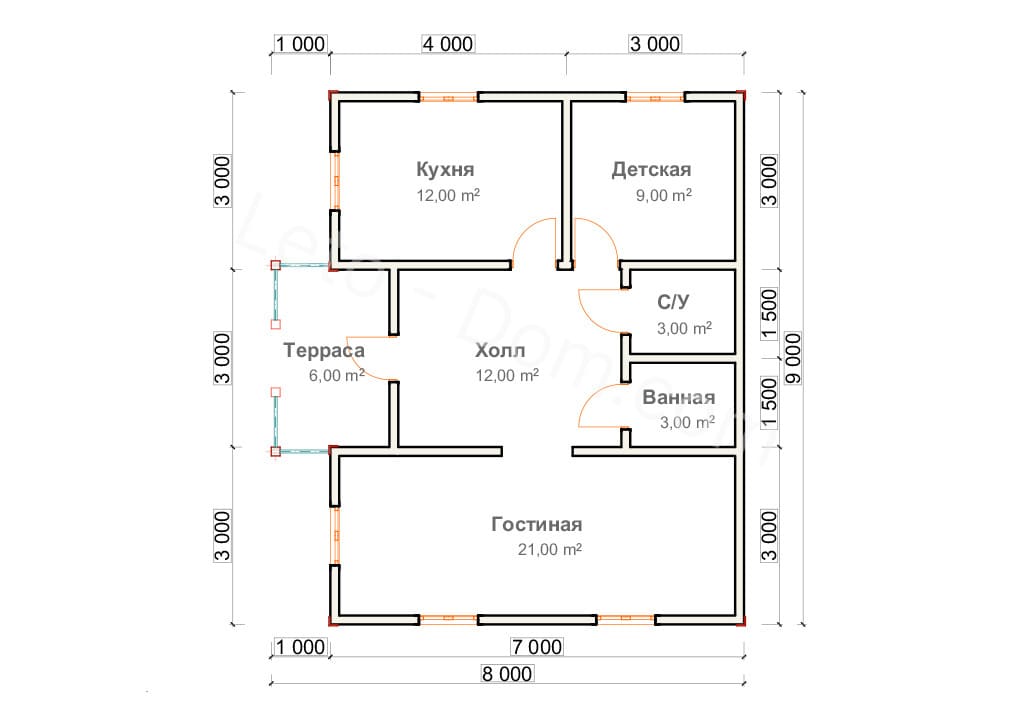 Внесем изменения в любой типовой проект: перенесем перегородки, двери, пристроим террасу.