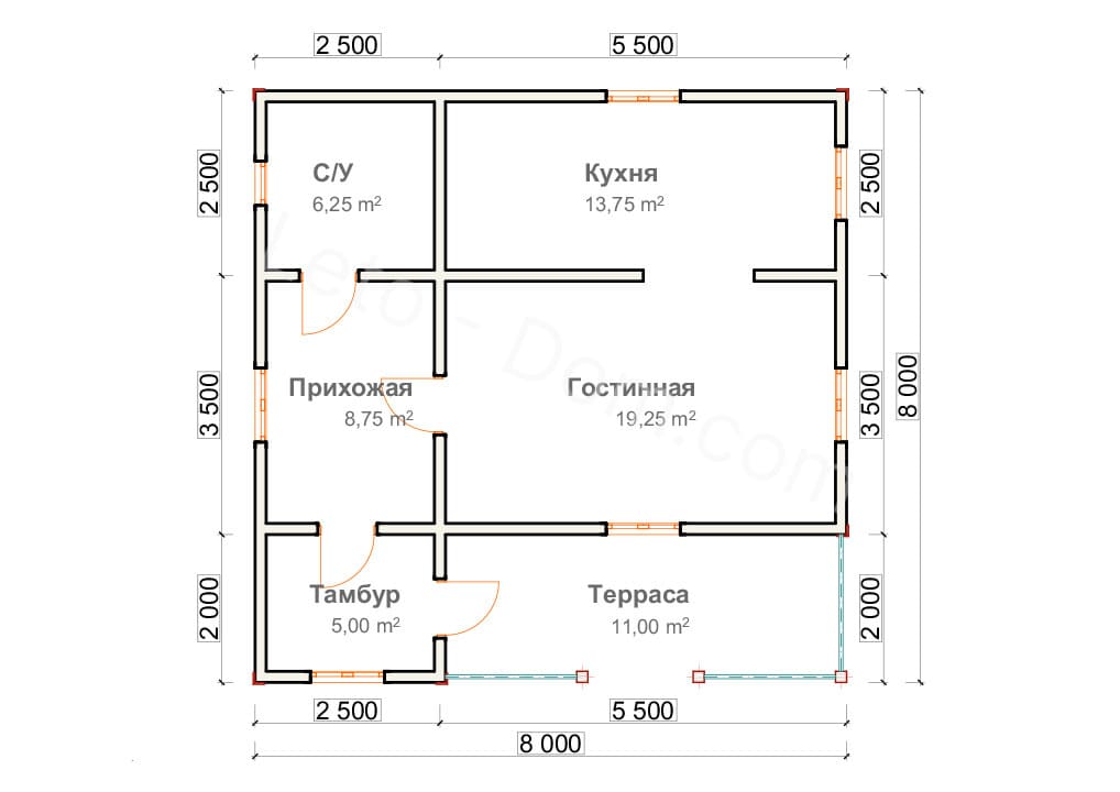 Внесем изменения в любой типовой проект: перенесем перегородки, двери, пристроим террасу.