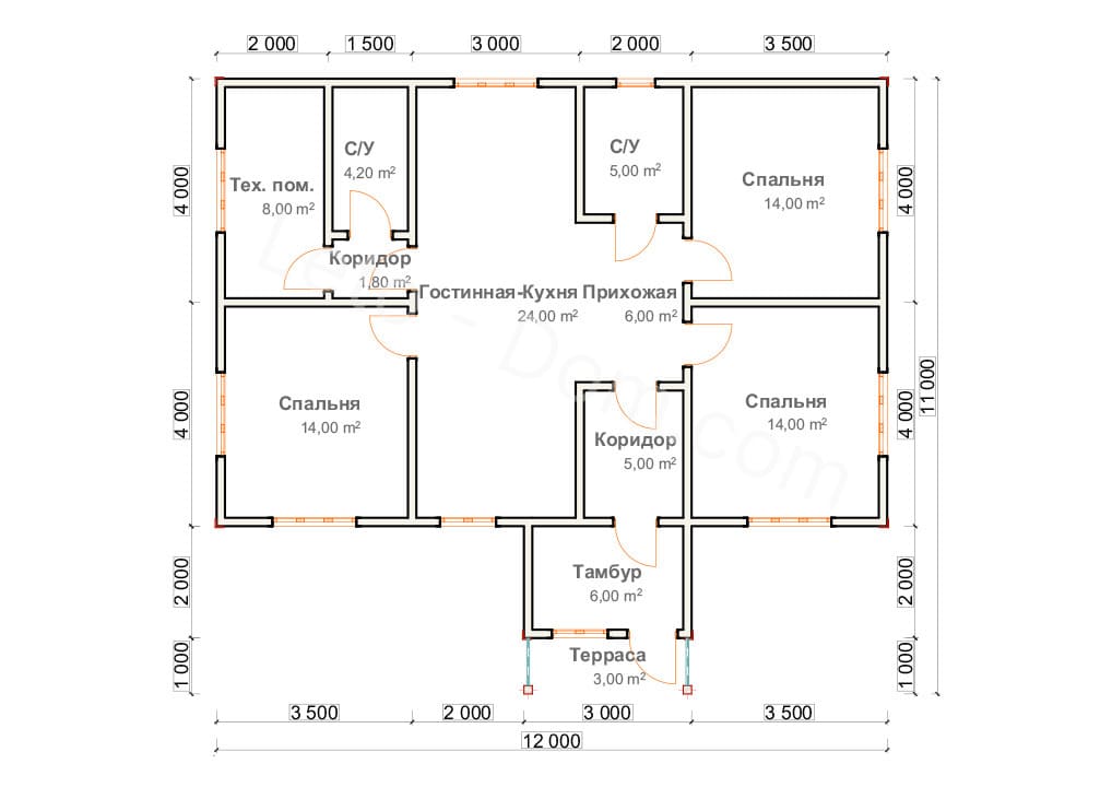 Внесем изменения в любой типовой проект: перенесем перегородки, двери, пристроим террасу.