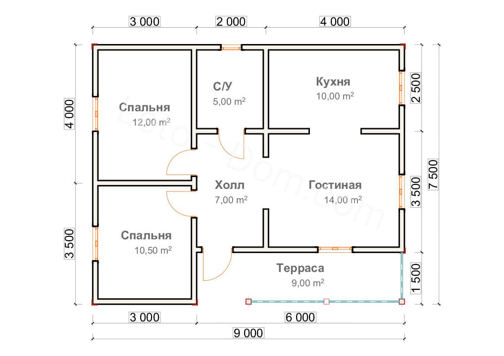 Внесем изменения в любой типовой проект: перенесем перегородки, двери, пристроим террасу.