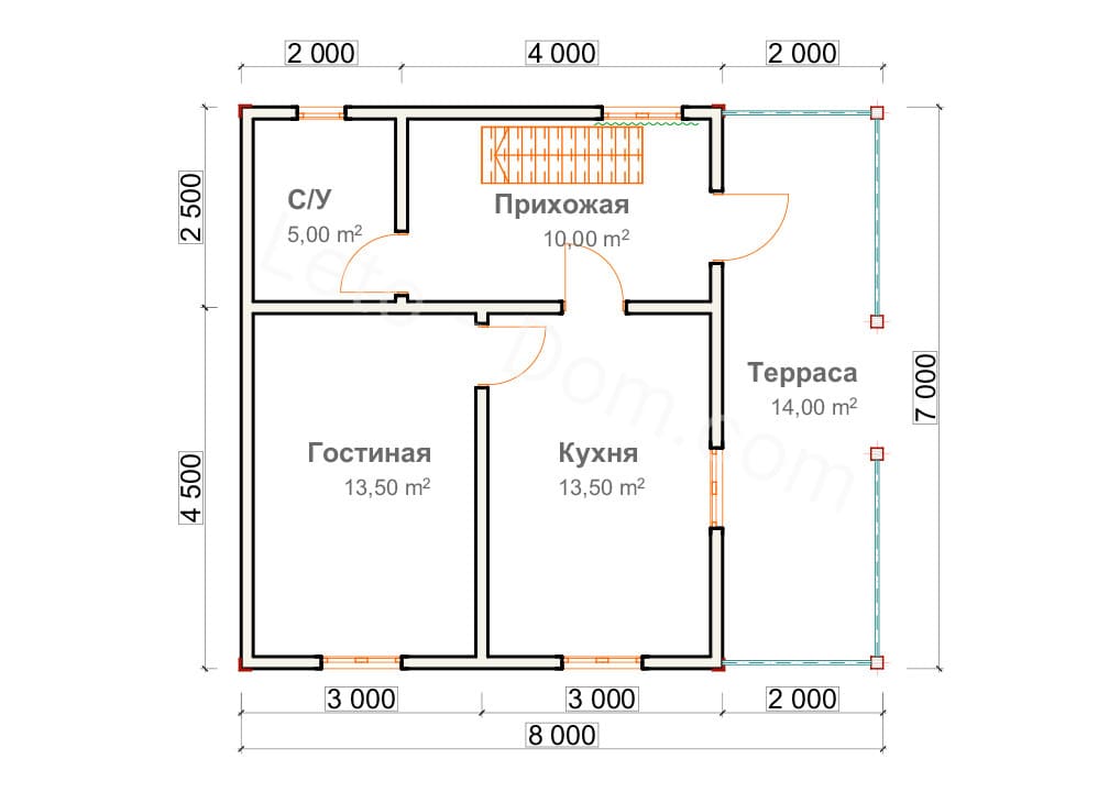 Дом из бруса 7х8м - Д48