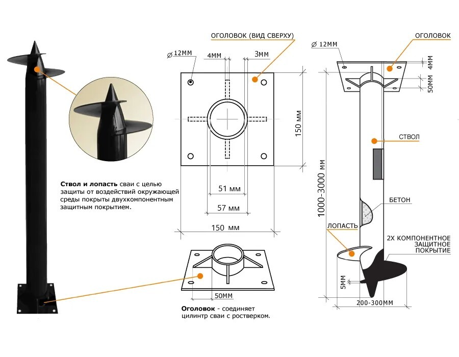 Сваи покрыты двухкомпонентным защитным покрытием против ржавчины и коррозии.