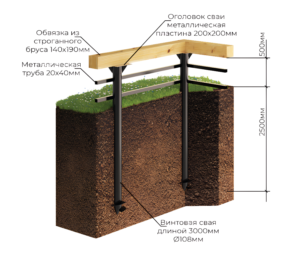 Фундамент из свай хорошо вентилируется, благодаря этому древесина не отсыревает