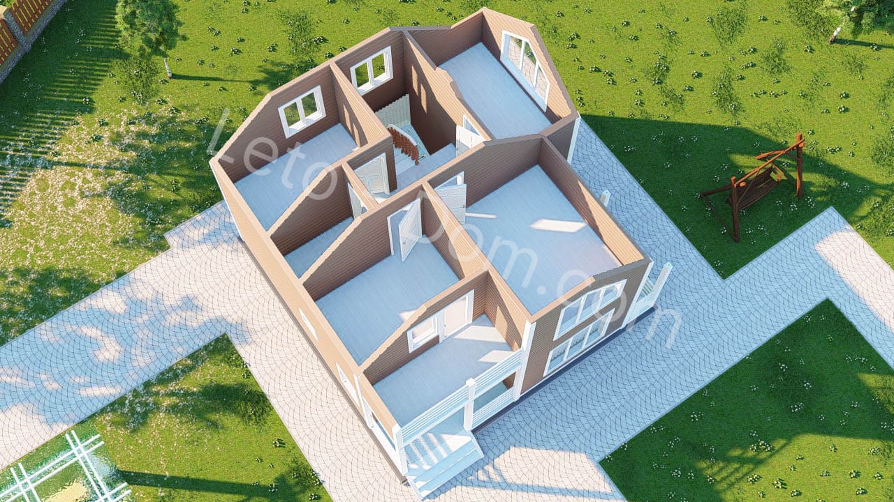 Согласно проекту дома (двухскатная, ломанная, ассиметричная). Высота конька кровли согласно проекту дома (3.5 м или 4 м)